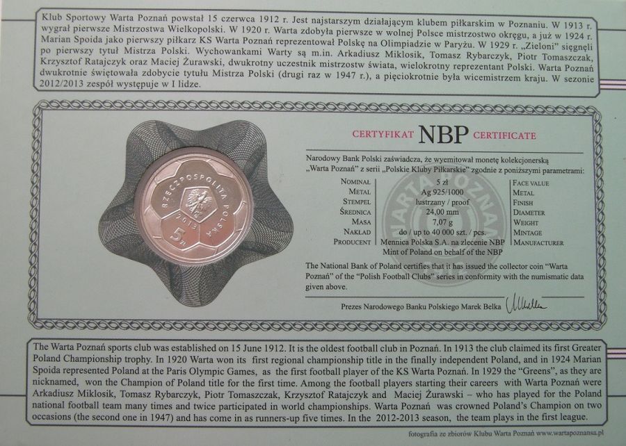 5 złotych - Polskie Kluby Piłkarskie - Warta Poznań